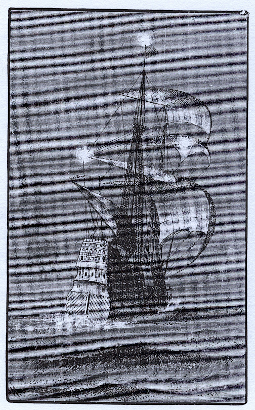 “Urriaren 26an, larunbata, ilunabarrean, Biraham-Batolach irlaren itsasbazterretik gindoazela enbata etorri zitzaigun eta horren aurrean belak bildu eta Jainkoari erregutu genion salba gintzan. Orduan ikusi genituen masten muturrean gure hiru santuak, eta iluntasuna desagerrarazi zuten bi ordu luzetan: San Telmo masta nagusian, San Nikolas mesanan eta Santa Klara trinketan”.