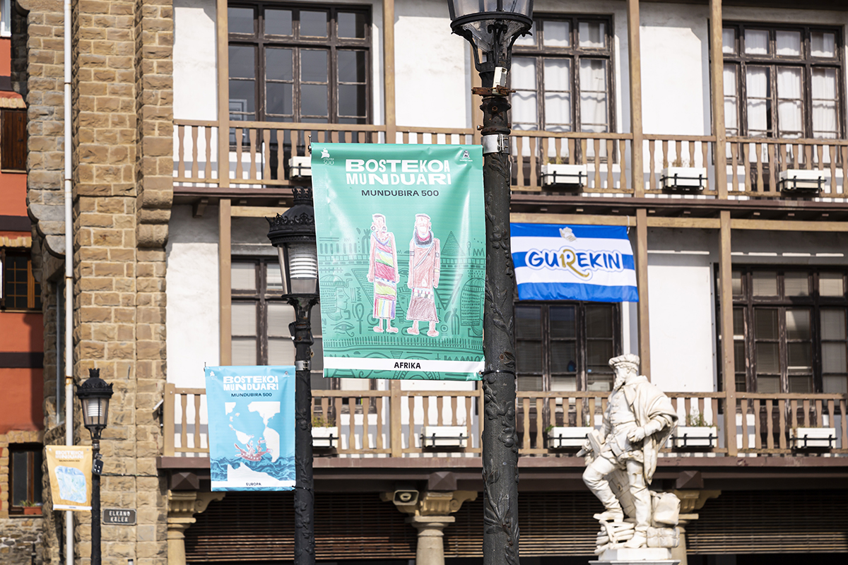 Lehen mundubiraren 500 urteak betetzen ari direnean, gertatutako hura aztertu, ezagutu eta munduari eskua luzatzeko garaia da. Ekimen honen bitartez, gazteenen ikuspegitik berrikusi da 5 ozeanoak gurutzatu eta 5 kontinenteak ukitu zituen bidaia. Kontinenteak, herrialdeak, herriak eta kulturak harremanetan jarri zituen bidaiak eta, azken finen, pertsonen harteko harreman horiek dira, egun garen hori egin gaituztenak. Hori dela eta, "Munduari bostekoa" aukeratu da kanpainaren lelo bezala eta horixe da Getariako haurren marrazkiak laguntzen dituen leloa.