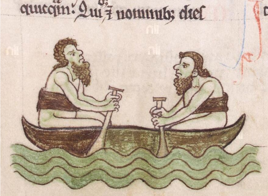 Siglos después, precisamente en el siglo VI, el cronista San Gildas narró que los pictos y escotos irlandeses se valían de barcos de cuero para moverse entre las islas y San Isidoro de Sevilla también recogía que en el siglo VII varios pueblos germanos usaban unas naves similares (PLINIO, p. 156. RACKHAM, trad.; ALONSO ROMERO, 1995, pp. 129, 131). “El mioparo es un esquife fabricado de mimbre que, recubierto de piel sin curtir, da lugar a este tipo de nave. Estas son las que debido a su movilidad, utilizan los piratas germanos en las costas de océano y en sus lagos. De ellos dice la historia: “El pueblo sajón confía más en los mioparos que en sus fuerzas, y más fácilmente emprenden la huida que se lanzan a la guerra […]. El carabus que se utiliza en el Po y en las lagunas. El carabus es un pequeño esquife construido de mimbres que, recubierto de piel sin curtir, proporciona este tipo de nave” (ISIDORO DE SEVILLA, pp. 21, 26).