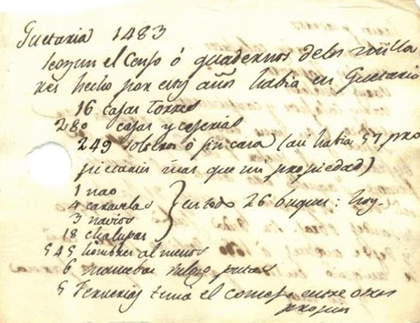 1483ko Getariako errolda. Iturria: Real Academia de la Historia (RAH), Vargas Ponce bilduma, 9/6077-1