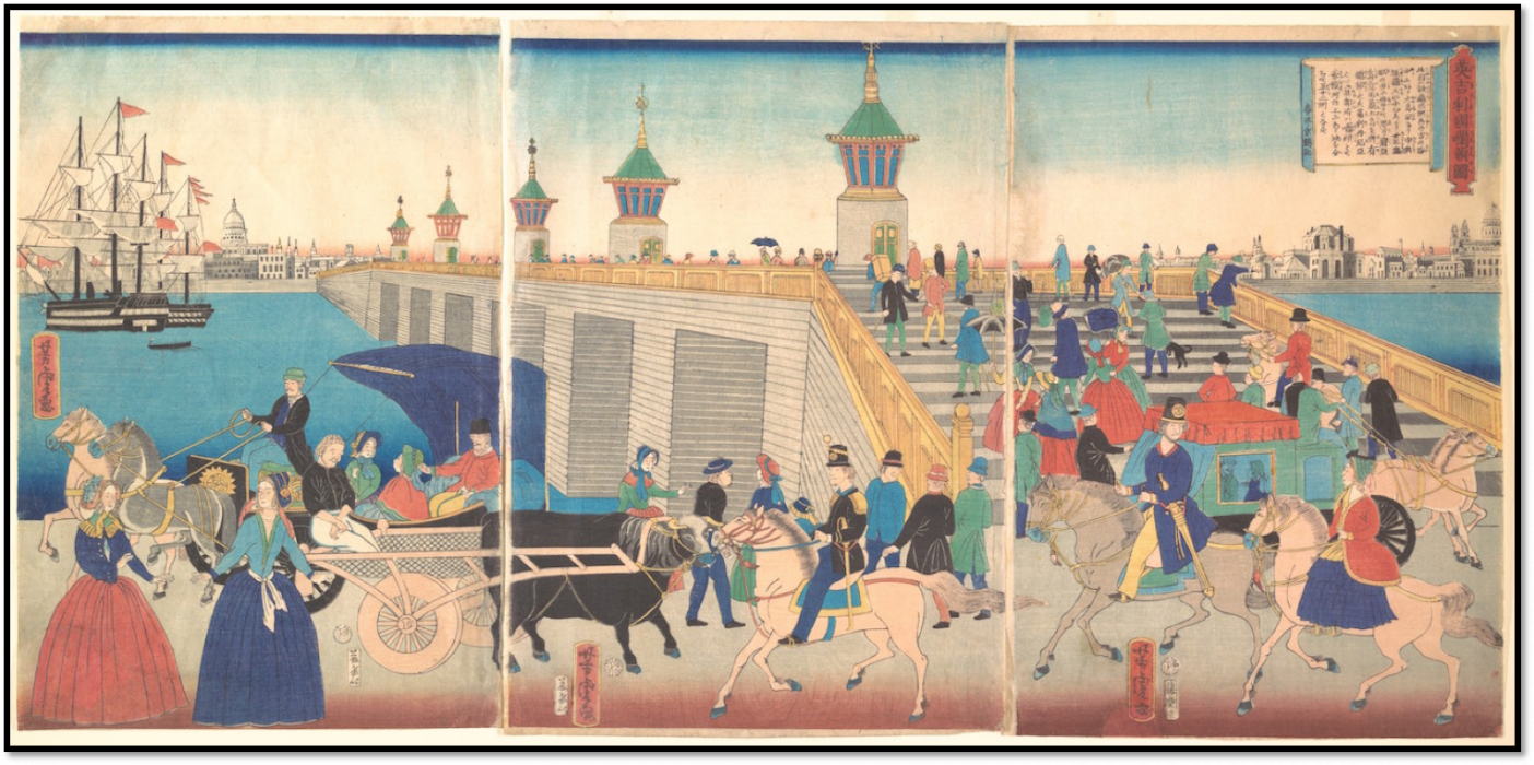 4. irudia. Londres, Utagawa Yoshitora-ren Igirisukoku Rondon no zu triptikoan, 1866. Iturria: Metropolitan Museum of Art.