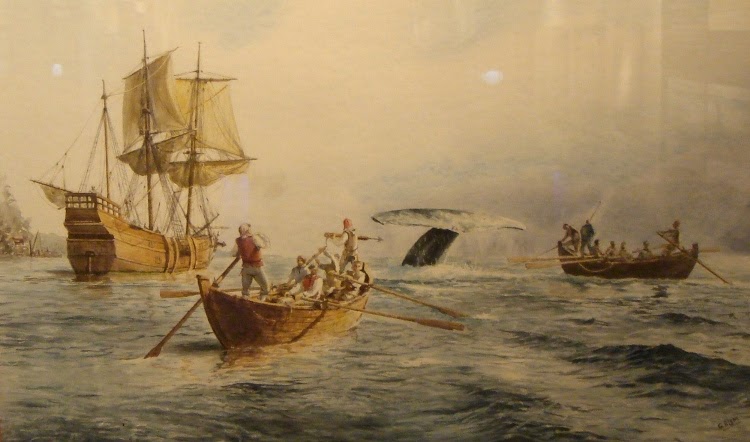 Arponeo de ballena en el siglo XVI. Acuarela de Guillermo González de Aledo, 1992. Colección Euskal Itsas Museoa.